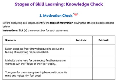 Worksheel - aligned with lesson Strand 1 - 1. Stages of Skill Learning Lesson